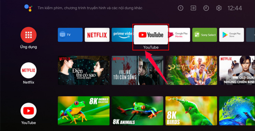 - Truy cập vào ứng dụng YouTube từ màn hình chính của tivi.