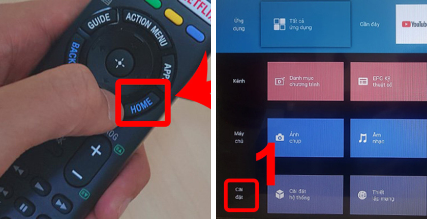 - Nhấn phím Home trên điều khiển từ xa,