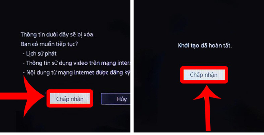 - Chọn ‘Chấp nhận’ để đặt lại.