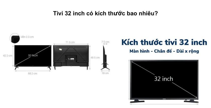 Tivi 32 inch có kích thước bao nhiêu?